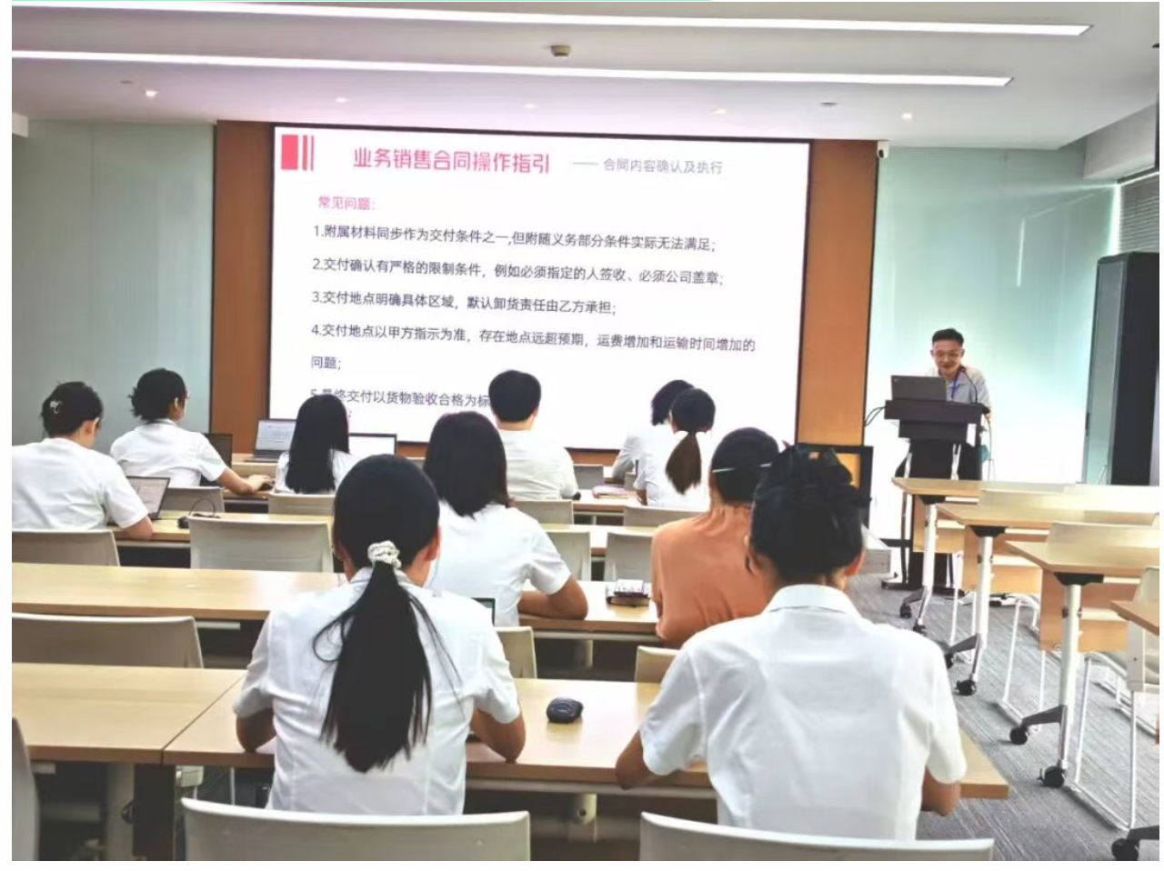 此前,8月20日,本所顾涛律师也应嘉兴知名上市企业——嘉兴中润光学科技股份有限公司的邀请,开展了题为“合同审核和风险管控”的专题法律讲座。顾涛律师从合同订立、履行、变更到争议解决的全流程入手,系统分析企业合同管理中常见法律风险,借助典型案例生动阐释如何规避潜在纠纷及有效固定关键证据。他还针对科技企业的行业特点,专项提出知识产权保护、涉外贸易注意事项等具体建议。企业法务负责人表示,该讲座是企业合规体系建设的重要一环,未来将进一步加强与专业律所的合作,筑牢风控防线。